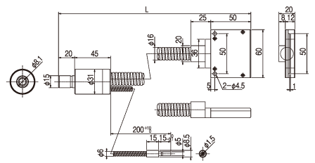 C:フレキシブルSUSチューブ投光部結束径4L:φ4 5L:φ5 B:フレキシブルSUSチューブ+PVC投光部結束径4L:φ4 5L:φ5