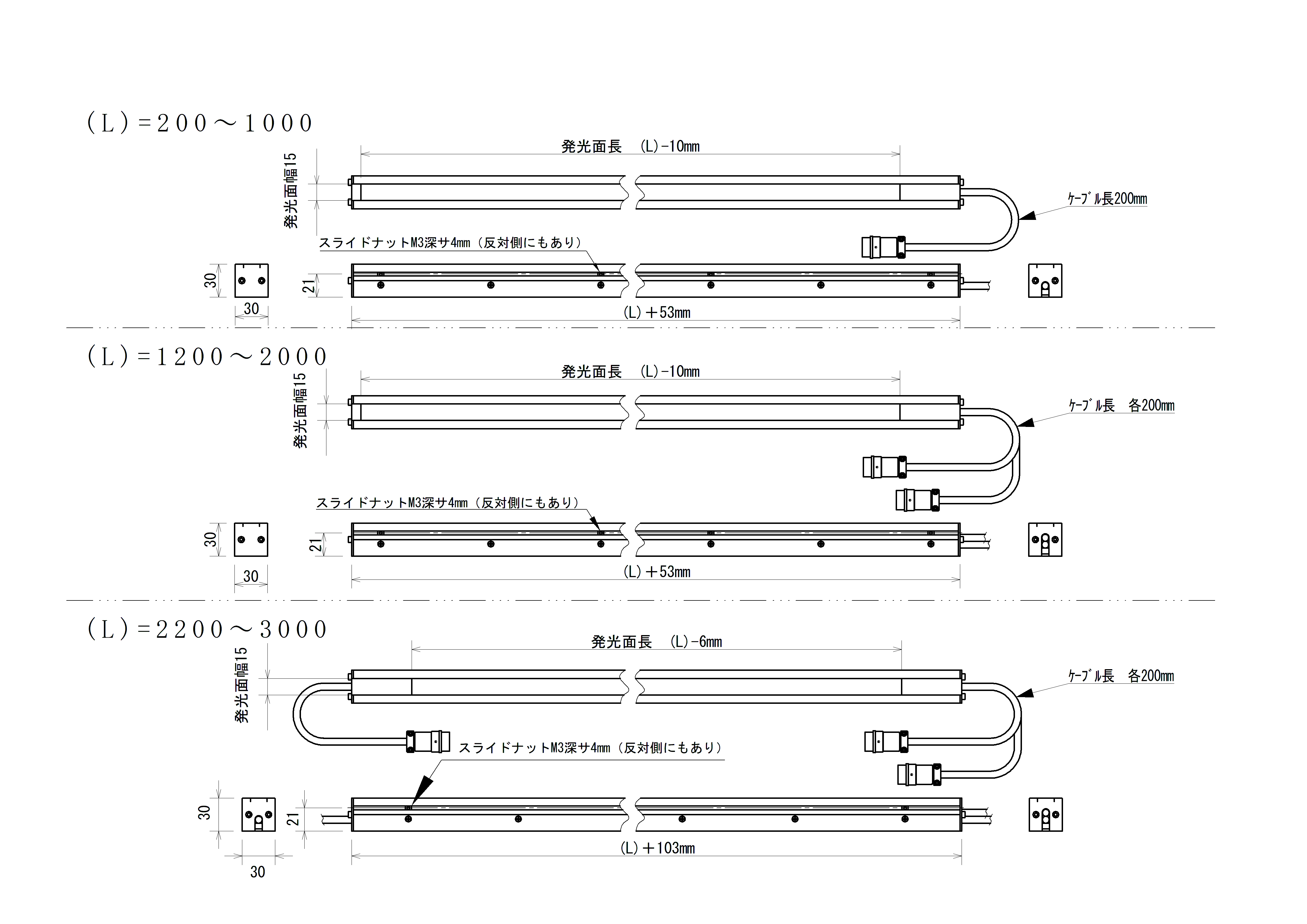 ※照明は付属しているM3ナットを全て使い、均等な間隔(200mm程度)で固定してください。