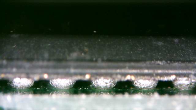 BGAパッケージの外周1列目の目視観察・検査に適したスコープです。BGA観察用プリズムを使用し、BGAボールと基板との半田(はんだ)接合状態をパソコンのモニター画面で拡大観察することができます。 110倍の大きさ(20型モニター上)で観察ができるので、径の小さいBGAボールやCSPも観察することができます。