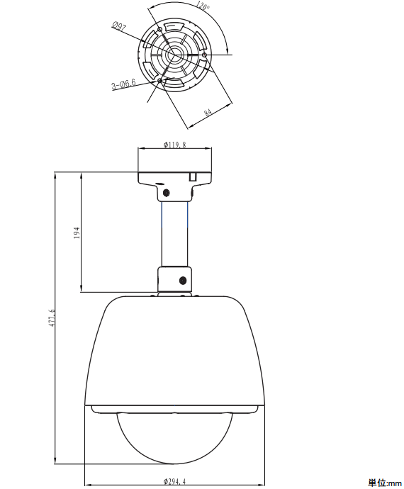 屋内用ドームカメラ、スピードドームカメラ等を収納し、屋外での使用を可能にします。