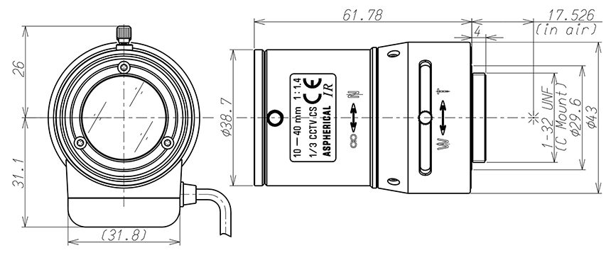 | 1/3" | Wide | 27.6゜x 20.4゜ | |