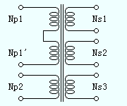 | 基本的には巻線そのものの設計ではなく、巻線構造に大きく左右されます。結合をよくするということは、1次巻線から発生した磁束をなるべく多く2次巻線の中へ通過させるということです。 |