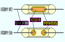 | 機器などの部品の故障や回路のショートなどによって生じる、異常な発熱を本体及びリード線より感知し、回路を遮断する過熱保護部品です。 | |